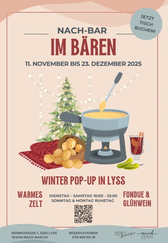 Wie schon letztes Jahr betreiben unsere Freunde von Nach-Bar das beliebte Winter Pop-up bei uns auf der gedeckten, beheizten Bären Terrasse.