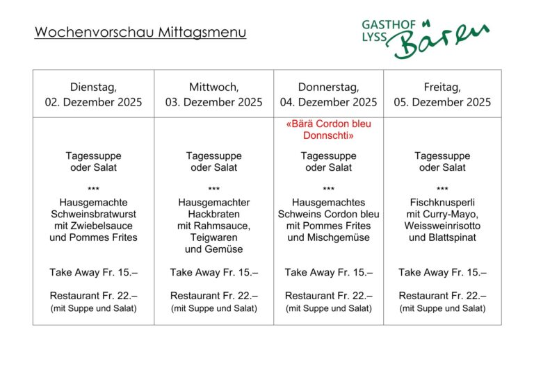 Reservieren Sie also noch heute einen Tisch und freuen Sie sich auf einen tollen Abend mit viel Wild aus einheimischer Jagd und natürlich auch den dazugehörigen Beilagen.